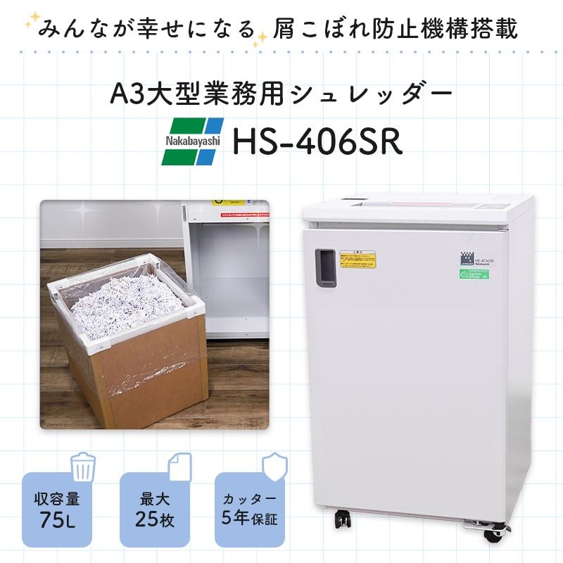 ナカバヤシ 業務用シュレッダー SXI-406CR 【中古/現行機種/2019年製/最大細断26枚/収容量80L/はさみ】