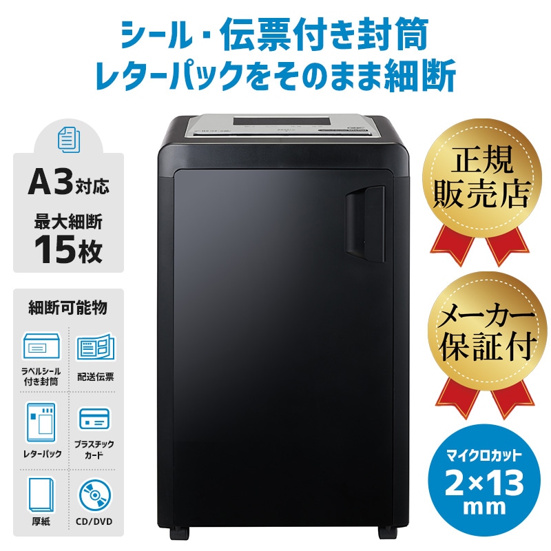 【カーボン複写伝票 シール付き 封筒 レターパック 細断】A3業務用マイクロカットシュレッダー 厚紙 ハガキ ホチキス CD/DV...