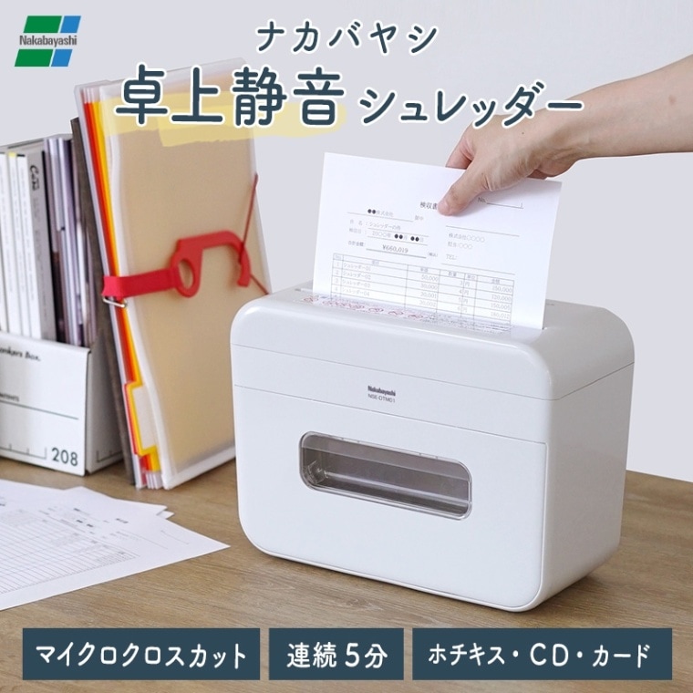ナカバヤシ 静音 卓上シュレッダー マイクロクロスカット 電動 家庭用 大掃除 小さい コンパクト A4 ホッチキス ホチキス C...