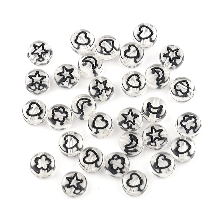 約7mm×3.5mm 50個入 アクリルビーズ フラットラウンド クリア×ブラック アソート 穴約1.6mm / 透明 スペーサー...