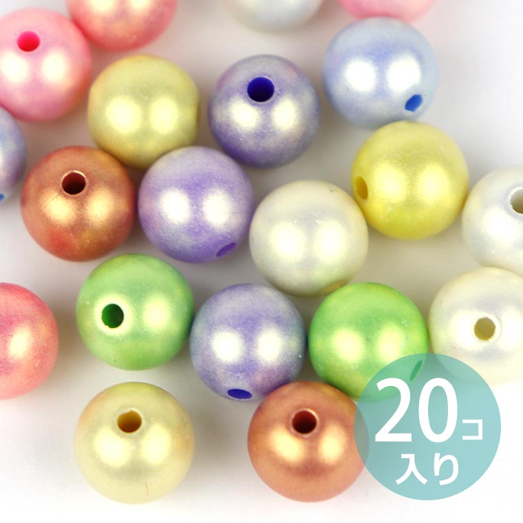 直径10mm アソート20個入 アクリルビーズ マットパールカラー 球形 穴1.8mm / パール風 パステルカラー スペーサー ...