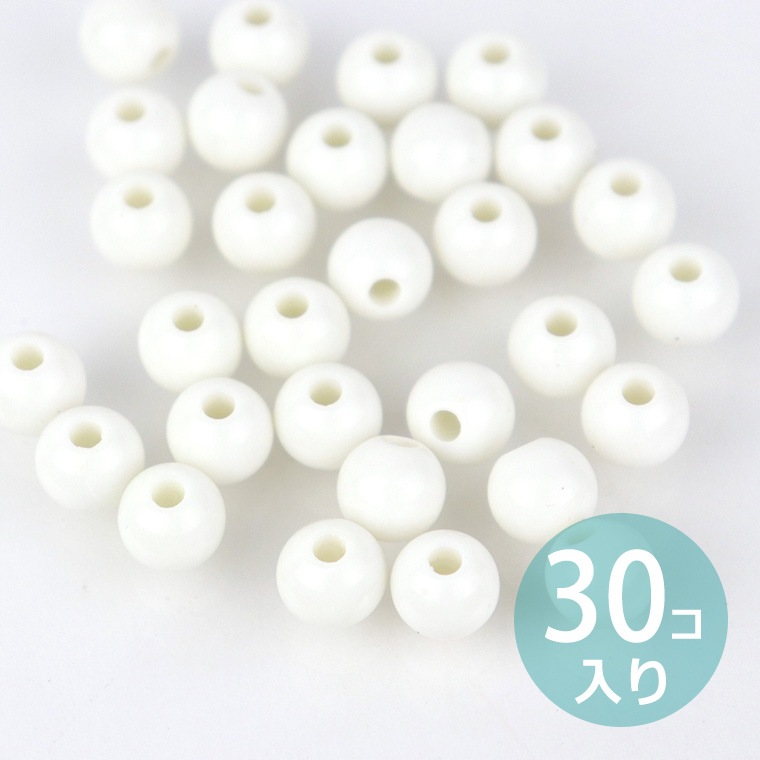 30個入 8mm ホワイト シンプルアクリルビーズ 中 球形 円形 穴2.4mm / しろ 白 シンプル 手芸 プラビーズ プラス...