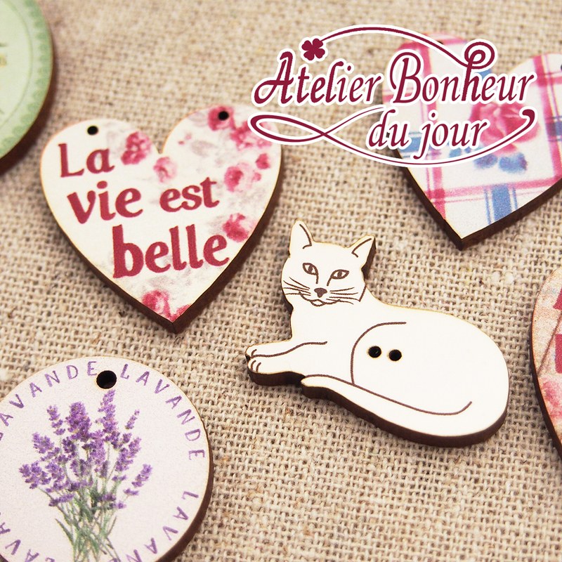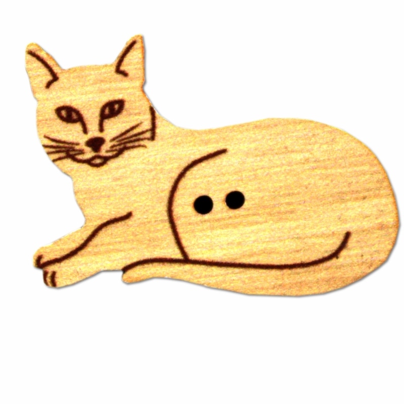 フランス製 木製ボタン 2つ穴 (ネコ×横向き×ウッド) アトリエ・ボヌール・ドゥ・ジュール