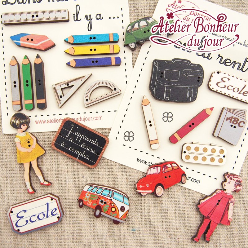 フランス製 木製ボタンセット (学校) アトリエ・ボヌール・ドゥ・ジュール