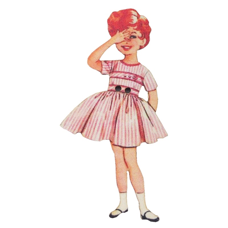 フランス製 木製ボタン 2つ穴 (赤毛の女の子) アトリエ・ボヌール・ドゥ・ジュール