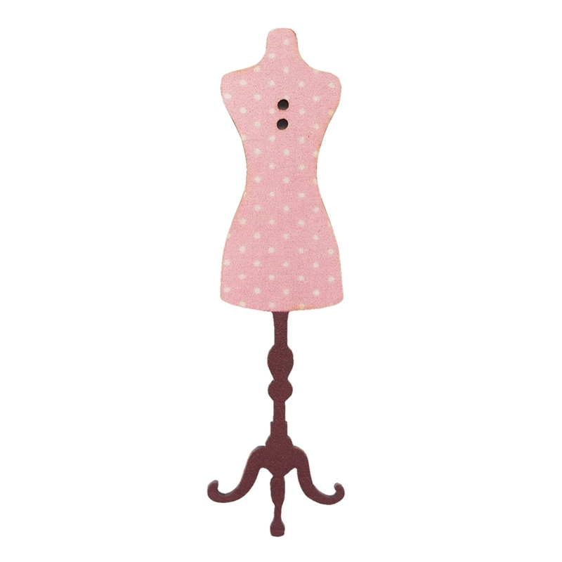 フランス製 木製ボタン 2つ穴 (トルソー×ドット×ピンク) アトリエ・ボヌール・ドゥ・ジュール