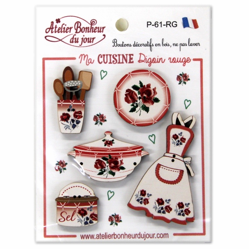 フランス製 木製ボタンセット (私の赤いディゴワンキッチン) アトリエ・ボヌール・ドゥ・ジュール
