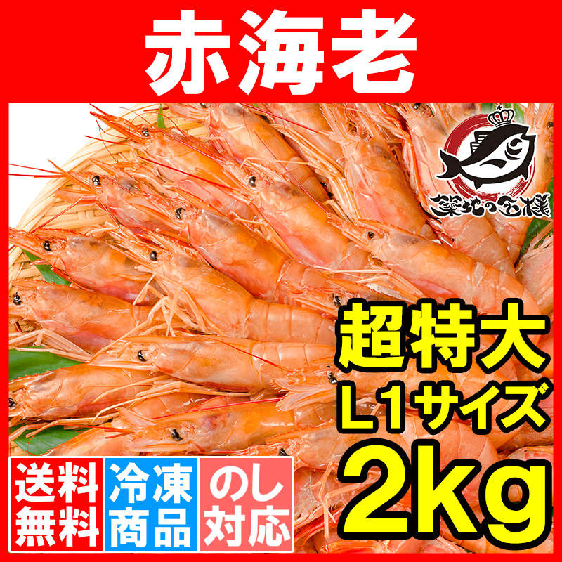 送料無料 赤海老 赤えび 2kg 超特大 L1 20~40尾 業務用 1箱 赤エビ あかえび アカエビ 寿司 刺身用
