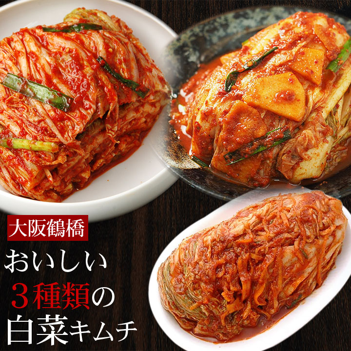 3種類の白菜キムチ1.5kg詰合せセット 専門店ならではの味!(白菜キムチ500g、梨の実入り白菜キムチ500g、白菜はさみ漬けキ...