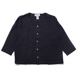 AuVraiChic BRITAIN オーブライシックブリテン アイリッシュ リネン ノーカラー ジャケット ネイビー Indig...