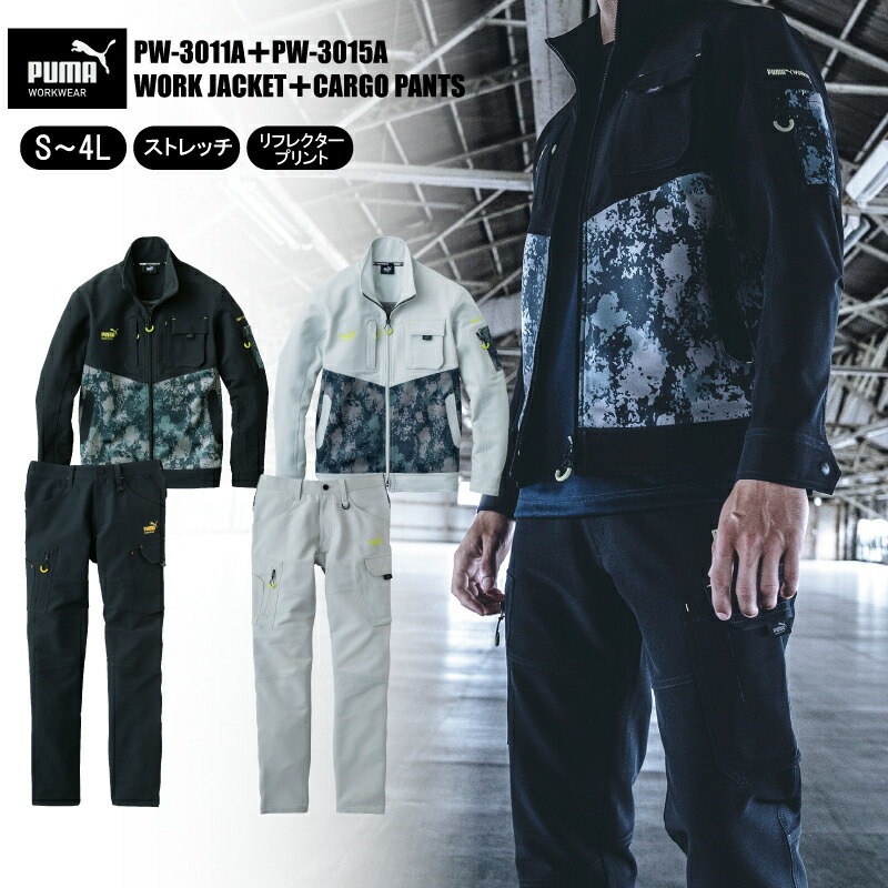 PW-3011A+PW-3015A ワークジャケット カーゴパンツ 上下セット プーマ PUMA 作業服 作業着 ワーク メンズ ...
