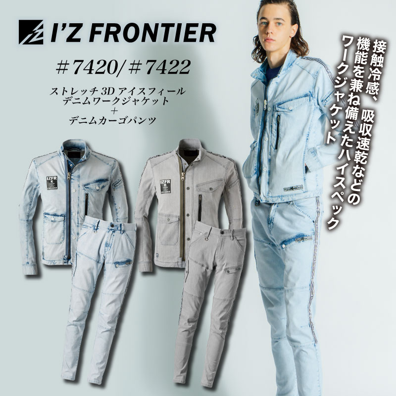 [7420][7422]ストレッチ3Dアイスフィールデニムジャケット+カーゴパンツ 上下セット アイズフロンティア 作業服 アイ...