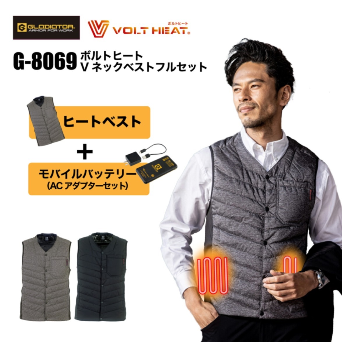 ボルトヒートVネックベスト G-8069 バッテリーセット