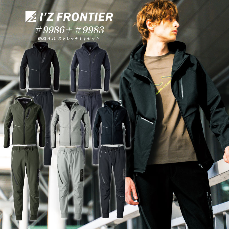 9986 9983 防風A.D.ワークパーカー+ジョガーパンツ上下セット アイズ アイズフロンティア フーディー 秋冬 作業服 ...