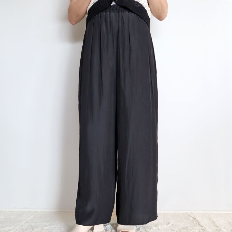 プリーツサテンワイドパンツ/VIVA PRESTO 8073