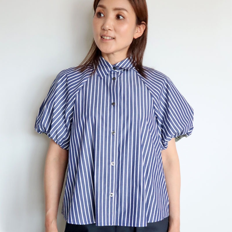 バルーンスリーブストライプシャツ/Arumlily 8938