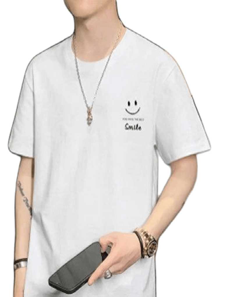 メンズ Tシャツ スマイル ワンポイント 半袖 トップス シャツ シンプル おしゃれ ストリート 春 夏