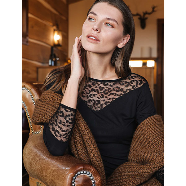 イタリア インポート ブランド カットソー COTONELLA GD478 アニマル柄切替ロングカットソー 黒