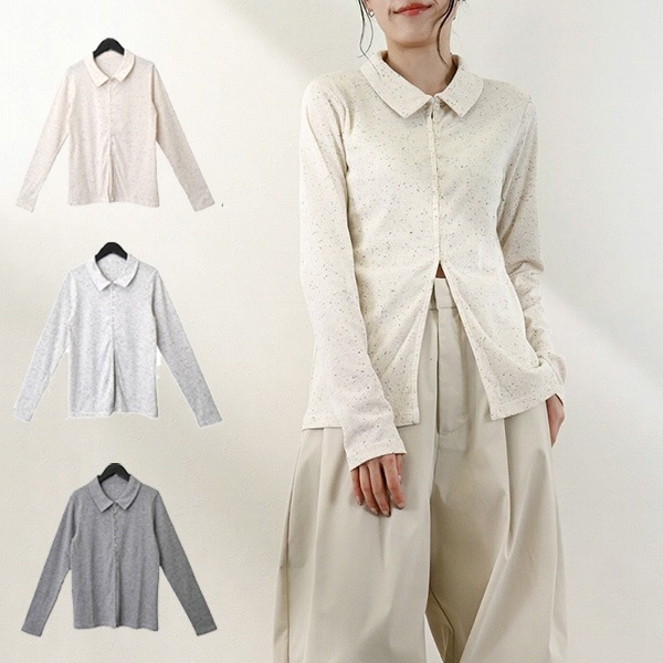 ネップリブ襟付きカーディガン