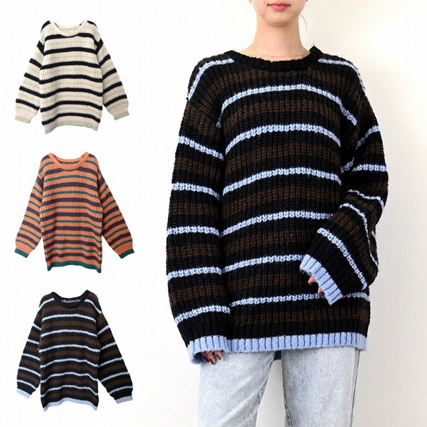 マルチカラーボーダーニットオーバーサイズプルオーバー