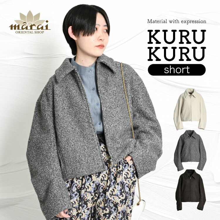 ブルゾン レディース アウター コート ジャケット 表情のある起毛。くるくるシャギーショートブルゾン ジャンパー 羽織 トレンド ...