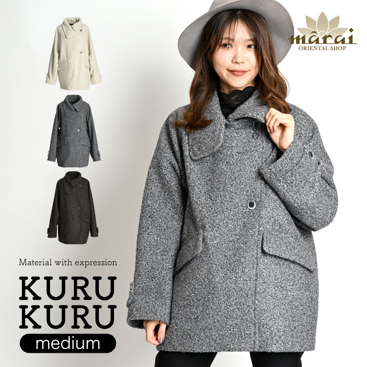 コート レディース アウター オーバー ジャケット 全部が丁度いい。ミニブークレオーバージャケット ウール 毛 ジャンパー トレン...