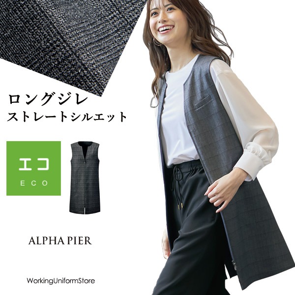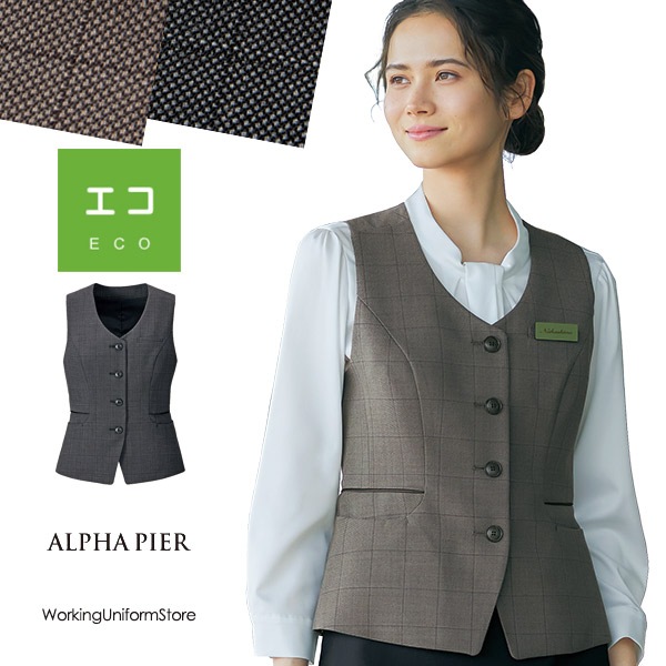 アルファピア事務服 ベスト AR2890 ニュートラルバズアイECOチェック