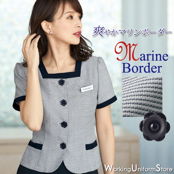 事務服 サマージャケット 86415 マリンボーダー アンジョア en joie