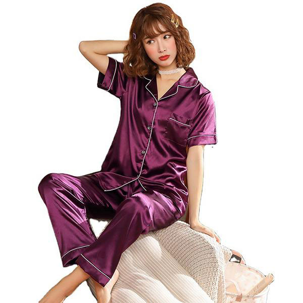 レディース パジャマ サテン生地 上下セット 半袖 アイスシルク 薄手 セットアップ ルームウェア 部屋着 寝間着 光沢 おしゃれ...
