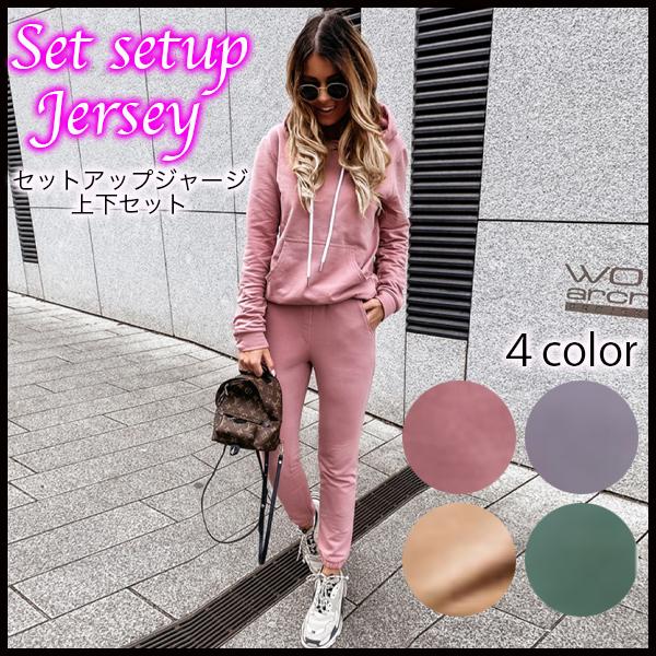 【即納】レディース フード付き ジャージ 上下 2点セット セットアップ パーカー パンツ スウェット 伸縮性 部屋着 普段着 ジ...