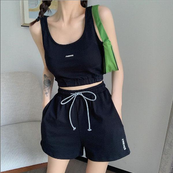 レディース クロップド丈 タンクトップ ショートパンツ 上下セット ノースリーブ へそ出し 短パン スポーツウェア ジム 部屋着 ...