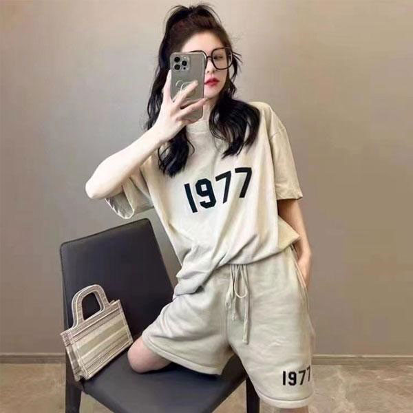 セットアップ ルームウエア 1977ロゴ ラウンドネック レディース Tシャツ ハーフパンツ 上下セット ゆったり パジャマ 部屋...