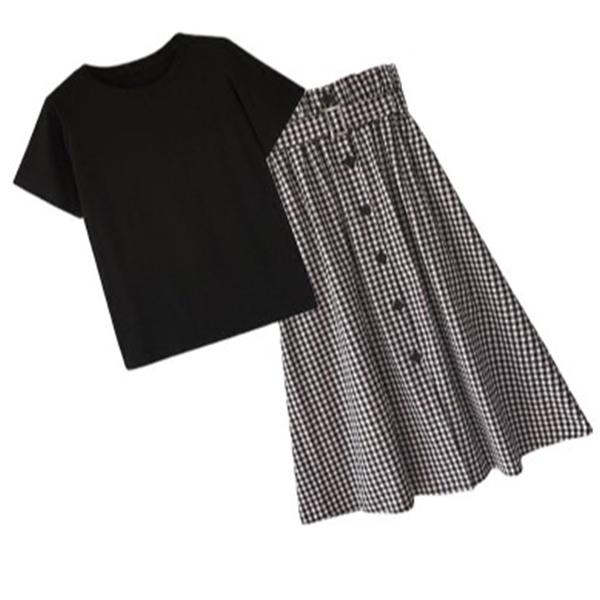 レディース 半袖 Tシャツ ハイウエスト ギャザー スカート セットアップ ツーピース ベルト付き ボタン付き ロング丈 脚長効果...