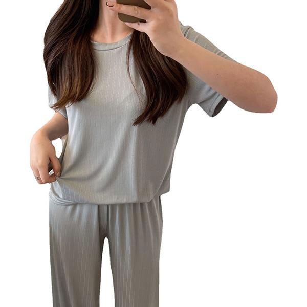 レディース ルームウェア 上下セット 半袖 アイスシルク 接触冷感 無地 シンプル セットアップ パジャマ 寝間着 部屋着 春 夏