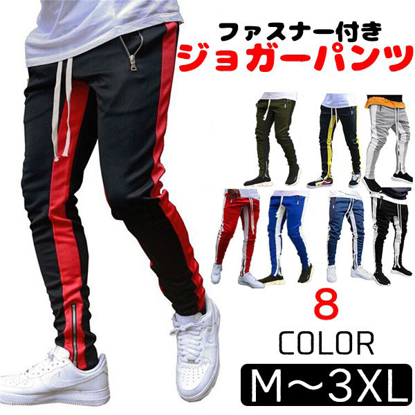 【セール】【即納】 メンズ ジョガーパンツ サイドライン入り ファスナー付き ルームウェア スポーツ フィットネス ストリート 普...
