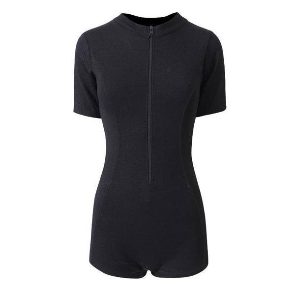 レディース 水着 ワンピースタイプ フィットネス 半袖 パンツ付き ショート丈 ハーフジップ 胸パッド付き 取り外し可 フィット ...
