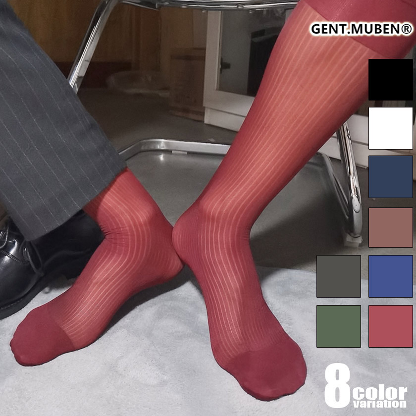 GENT.MUBEN/ジェント・ムーベン 光沢 ナイロン ソックス 薄手 シースルー ミドル丈 ビジネス 靴下 ソックス メンズ ...