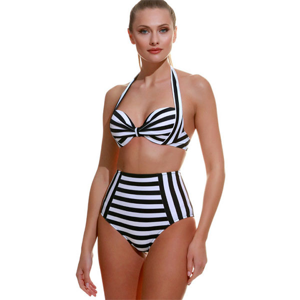 イタリアインポート水着 JOLIDON RF82 ストライプ柄ハイウェスト水着ビキニ 白黒