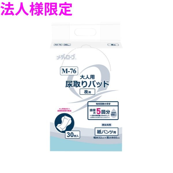 【法人様限定】リーブル メディローブ M-76 大人用尿取りパッド 夜用タイプ 30枚×6袋入 3ケースロット【メーカー直送・代引...