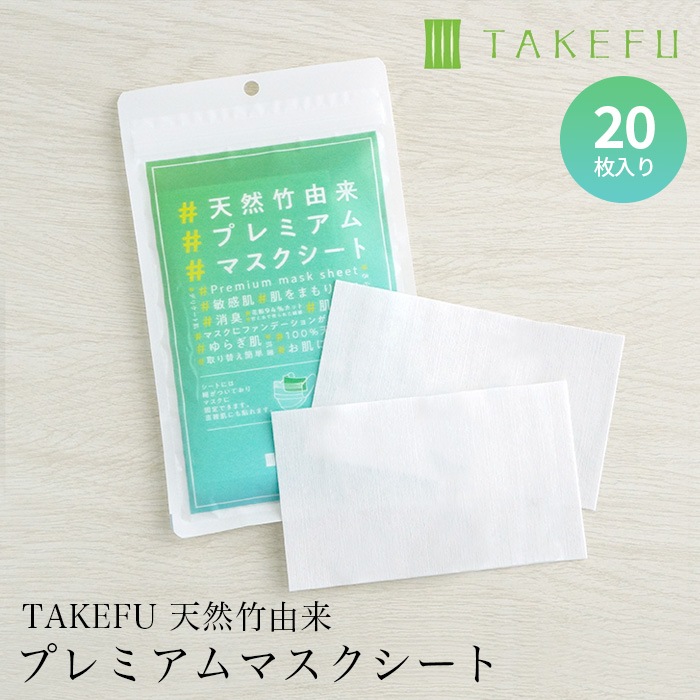 TAKEFU 竹布 天然竹由来 プレミアムマスクシート(20枚入) メール便使用 抗菌 保湿 花粉 マスクシート 敏感肌