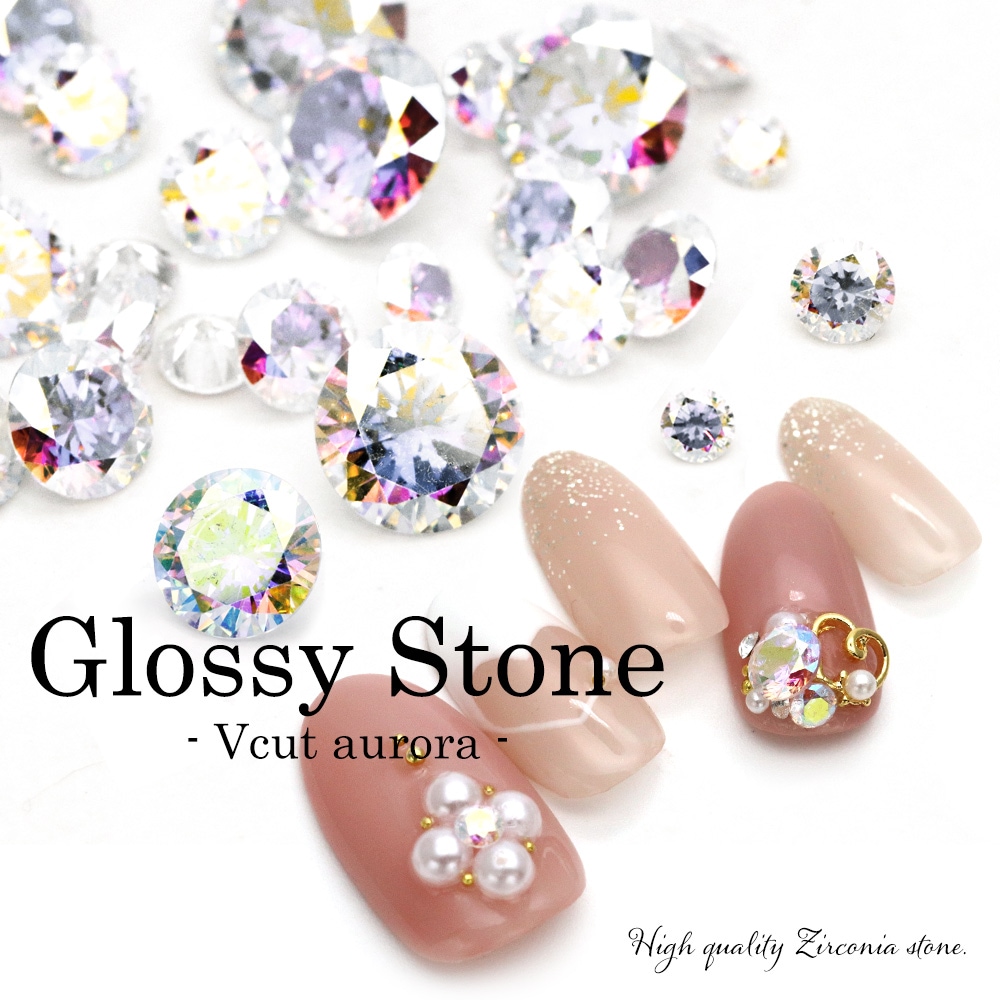 【ネコポス送料無料】ラインストーン ジルコニア製 グロッシーストーン(Glossy stone) Vカット/ラウンド オーロラ 約...