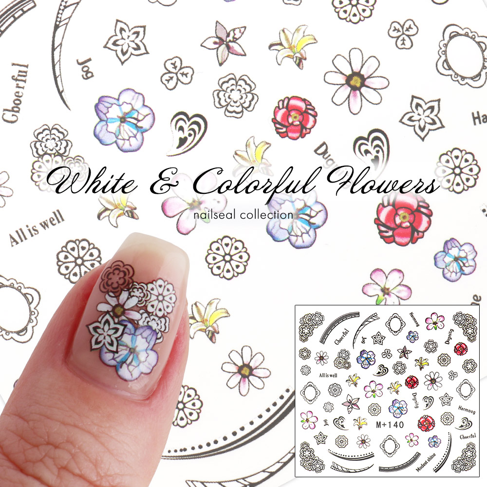 【ネコポス送料無料】ウォーターネイルシール ホワイト&カラフルフラワーシール