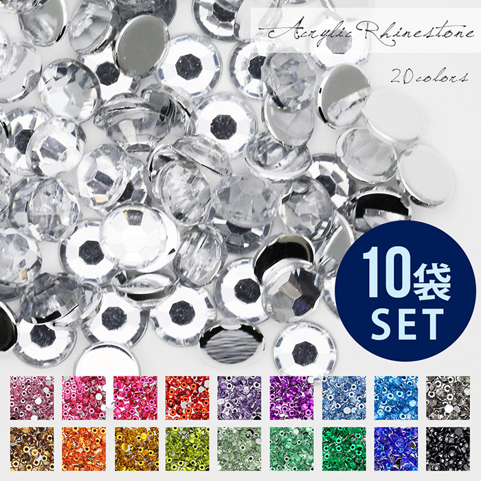 【ネコポス 送料無料】ラインストーン 高品質アクリルストーン 10袋セット 全20色 ネイルパーツ デコパーツ ジェルネイル まと...