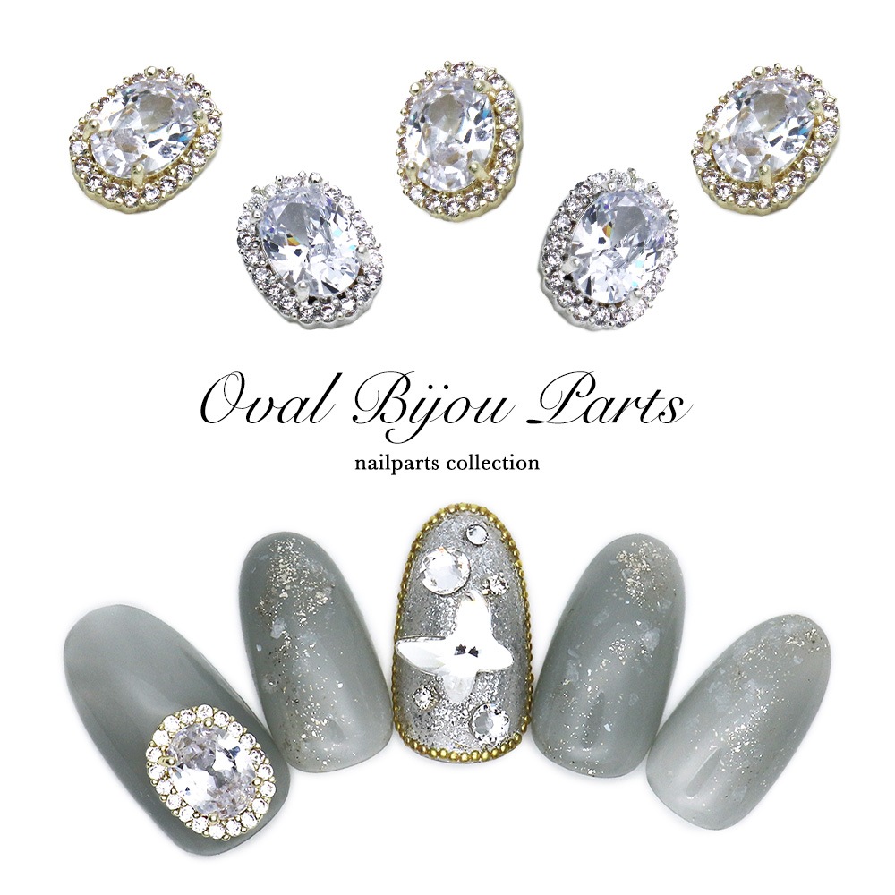 【ネコポス送料無料】ネイルパーツ ジルコニア製 オーバルビジューパーツ 全2色 1個入り