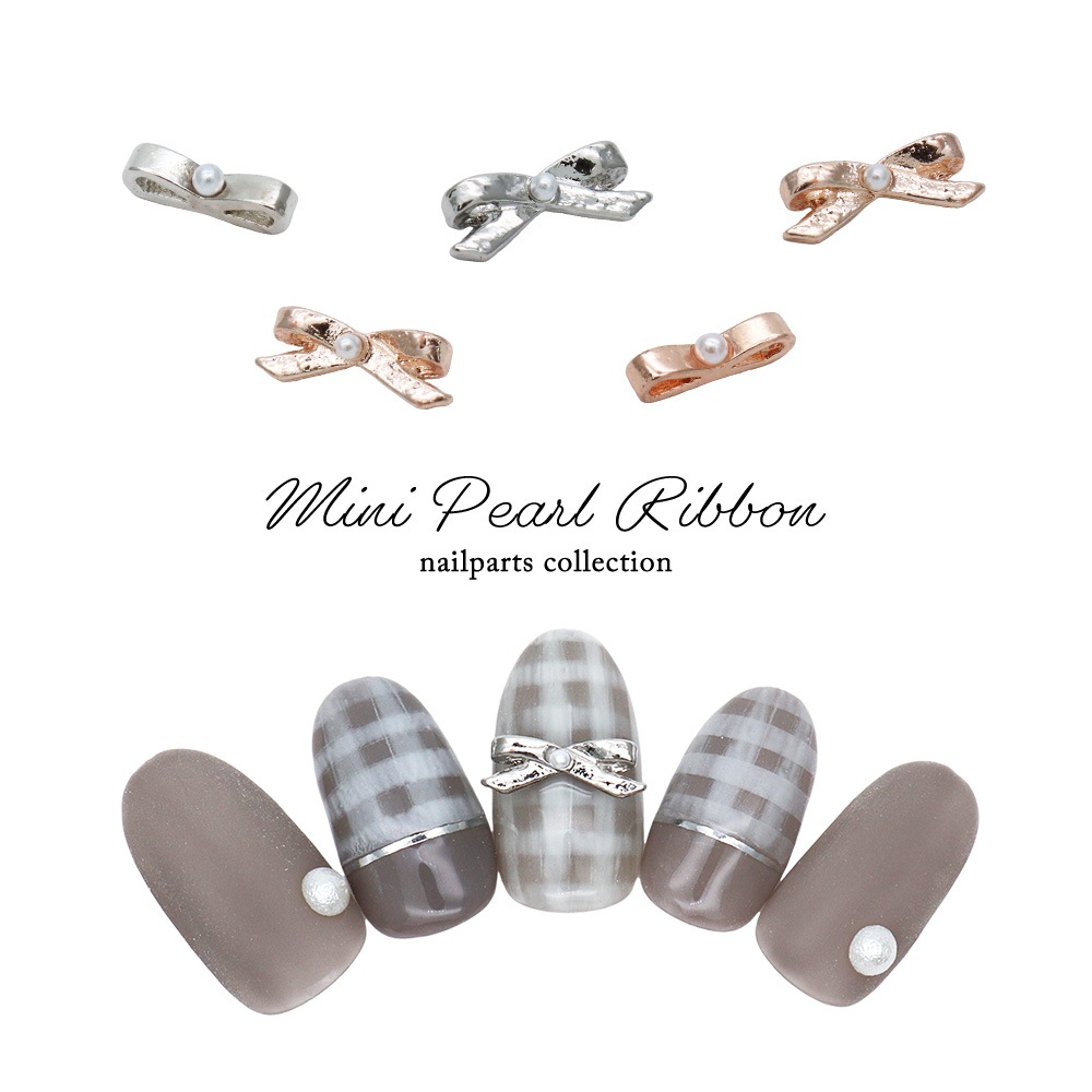 【ネコポス送料無料】ネイルパーツ ミニパールリボンパーツ [シルバー/ピンクゴールド] 全4種 4個入り