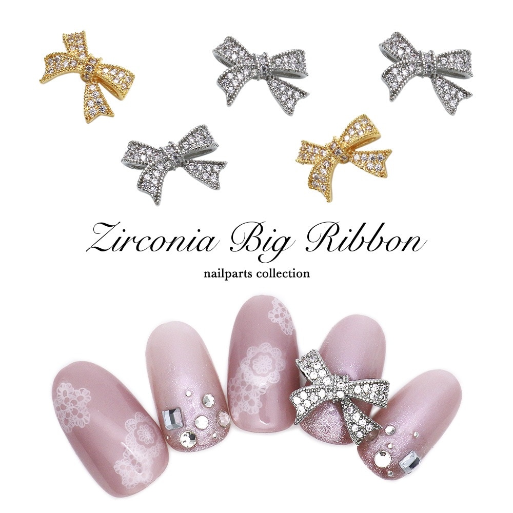 【ネコポス送料無料】ネイルパーツ ジルコニアビッグリボンパーツ ジルコニア製 [ゴールド/シルバー] 2個入り
