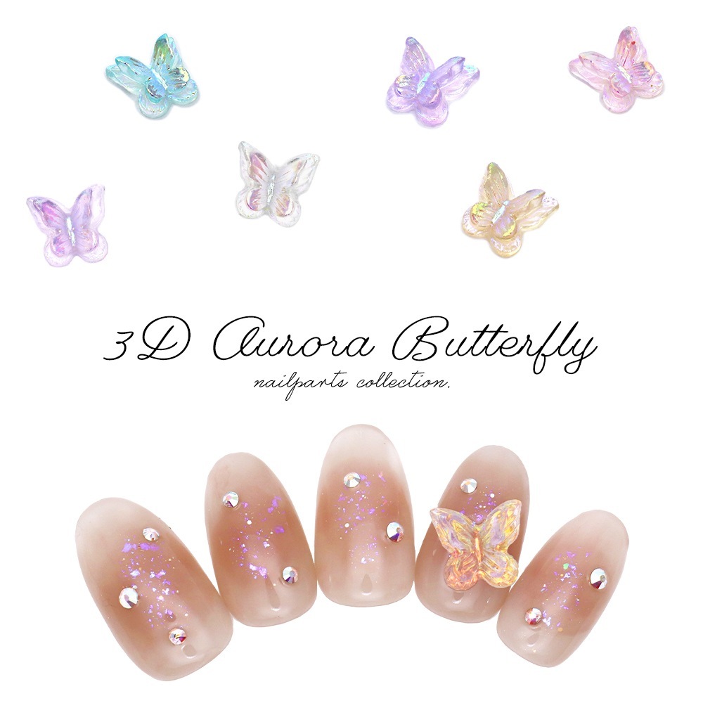 【ネコポス送料無料】ネイルパーツ 3Dオーロラバタフライパーツ 全5種 5個入り