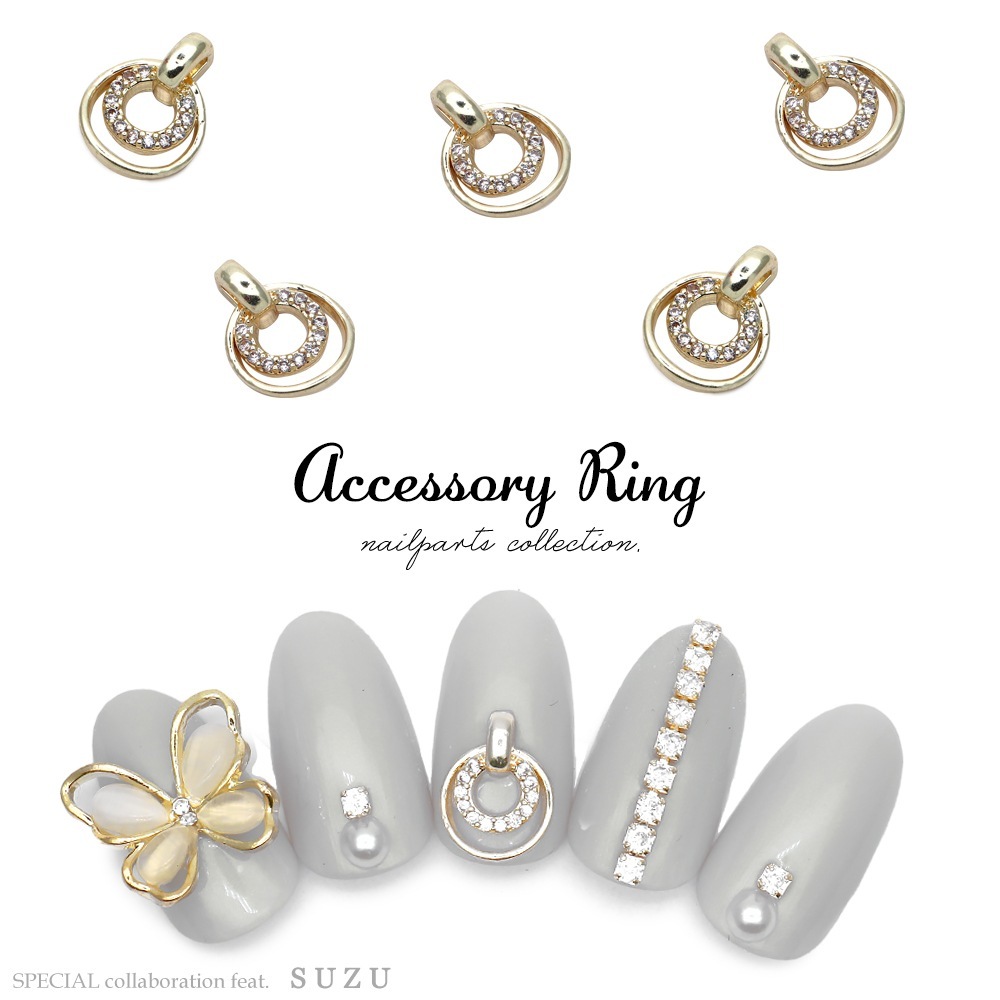 【ネコポス送料無料】ネイルパーツ SUZUコラボ商品 ジルコニア製 アクセサリーリングパーツ 2個入