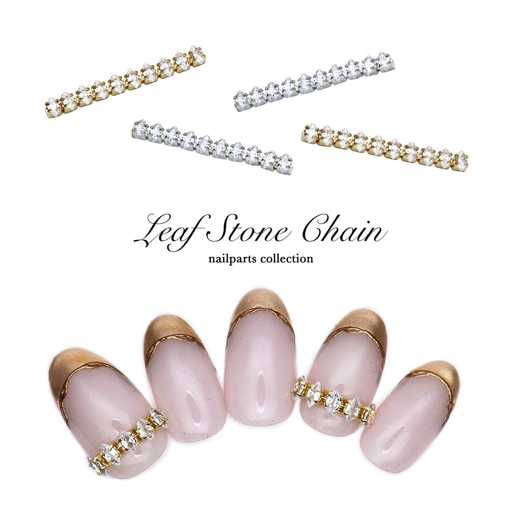【ネコポス送料無料】ネイルパーツ リーフストーンチェーンパーツ ジルコニア製 [ゴールド/シルバー] 2本入り