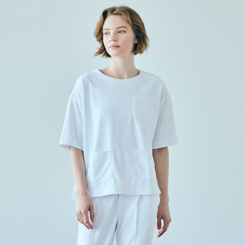 JILL STUART スクラブトップスストレッチオーバーサイズ ホワイト(4サイズ)